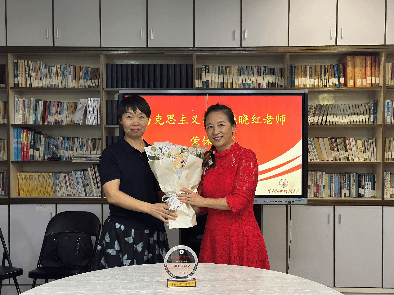 仪式由beat365在线唯一官网党总支书记姜晓丽主持。与会教师代表相继回顾了与饶晓红老师共事期间在学习、工作和生活中积累的珍贵记忆与代表性事例。学院领导对饶晓红老师多年来投身思想政治教育事业的热情与取得的显著成绩表示衷心感谢,高度赞扬了她敬业谦逊、师德高尚的精神风貌,并希望她退休后能继续关心和支持学院的发展。教师代表们也通过具体事例,表达了对饶老师真诚待人、团结协作、乐观向上品格的敬佩与赞赏,并祝贺饶老师拥抱更广阔的人生天地。