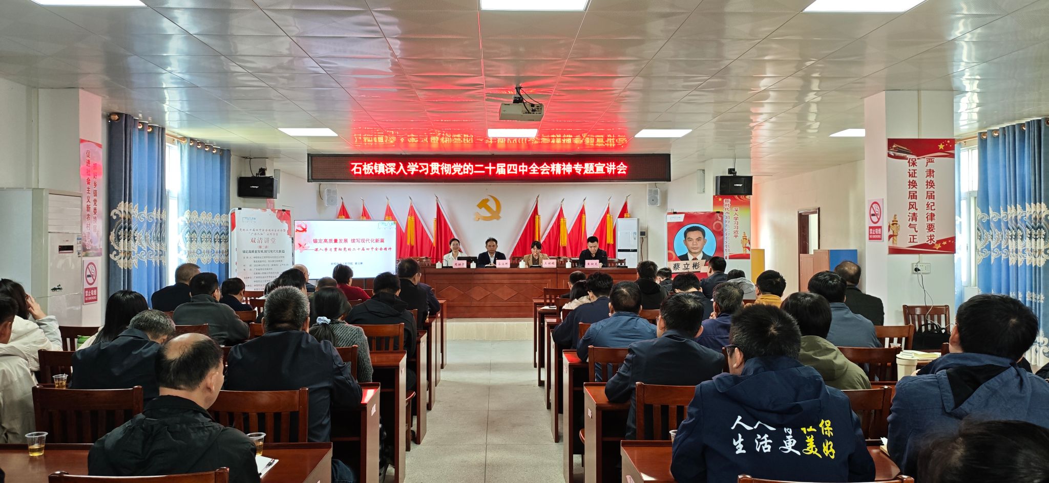 讲堂上,蔡立彬作题为《锚定高质量发展 续写现代化新篇——深入学习贯彻党的二十届四中全会精神》的宣讲报告。