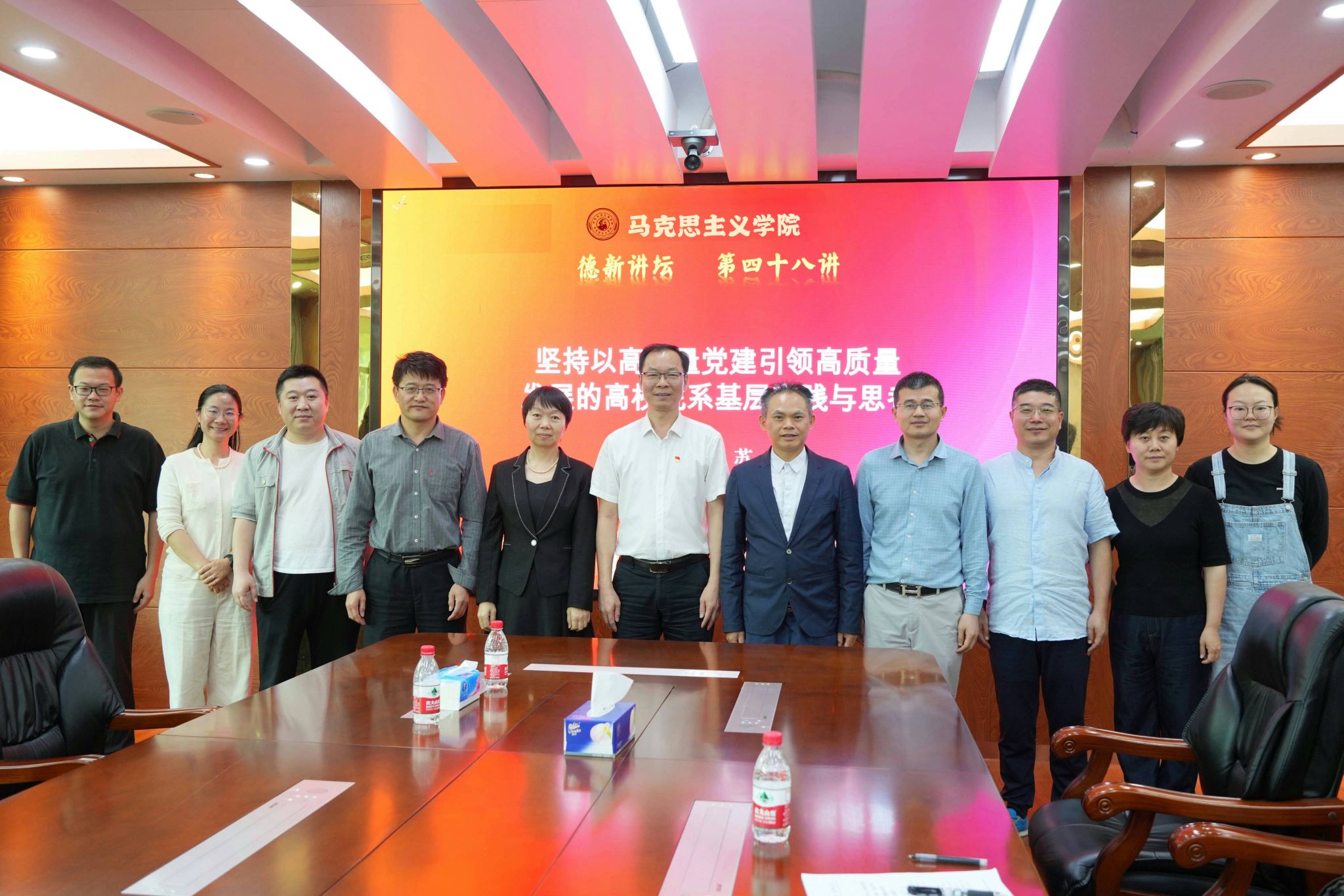 2025年4月17日下午,beat365在线唯一官网德新讲坛第四十八讲在海珠校区教学楼409会议室举行,本次讲坛特邀广东工业大学党委委员、自动化学院党委书记苏雷,以“坚持以高质量党建引领高质量发展的高校院系基层实践与思考”为主题进行党建 “双创” 专题辅导。beat365在线唯一官网党总支书记姜晓丽主持讲坛,自动化学院党委书记史孔仕,beat365在线唯一官网院长蔡立彬、副院长秦抗抗及学院教工党支部书记、支委参加。