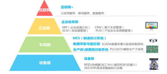 智能制造生产线采用模块化设计,覆盖知识点全面,同时采用贴切实际生产企业的工业级设备,如FANUC工业机器人、FANUC三维广域视觉、数控雕铣机、西门子S7-1200系列PLC、宝鸡一机数控加工中心、FARO便携式关节臂扫描仪伺服电机、三相异步电机、激光导航AGV等。整条产线可实现跨学科多专业教学实训。产线可以进行系统数字化展示,可进行产品全生命周期的信息管理、三维建模、生产控制、生产执行、数据采集等,最终通过工业云平台进行数字化信息的共享、分析、管理等。产线整体设计采用点-线-面的理念,每个设备作为一个点即设备级(每个机器人、传感器、数控车床、AGV),将设备与设备进行连接形成一条线即车间级(智能制造生产线),车间与车间联通构成企业级信息管理,最后所有数据达到互联网,构成设备信息、生产信息、订单信息等多点位,多信息交叉处理的互联网层级。