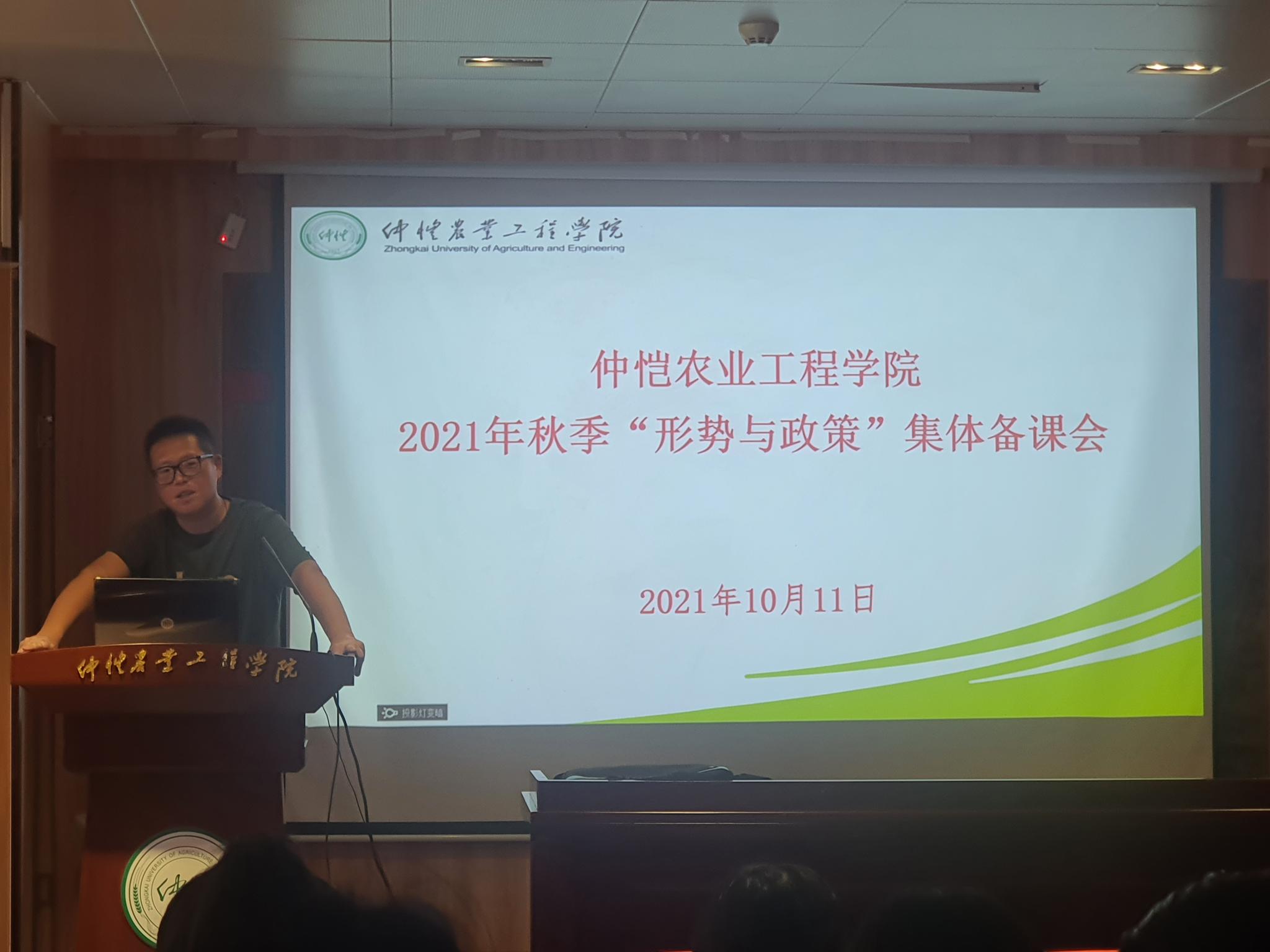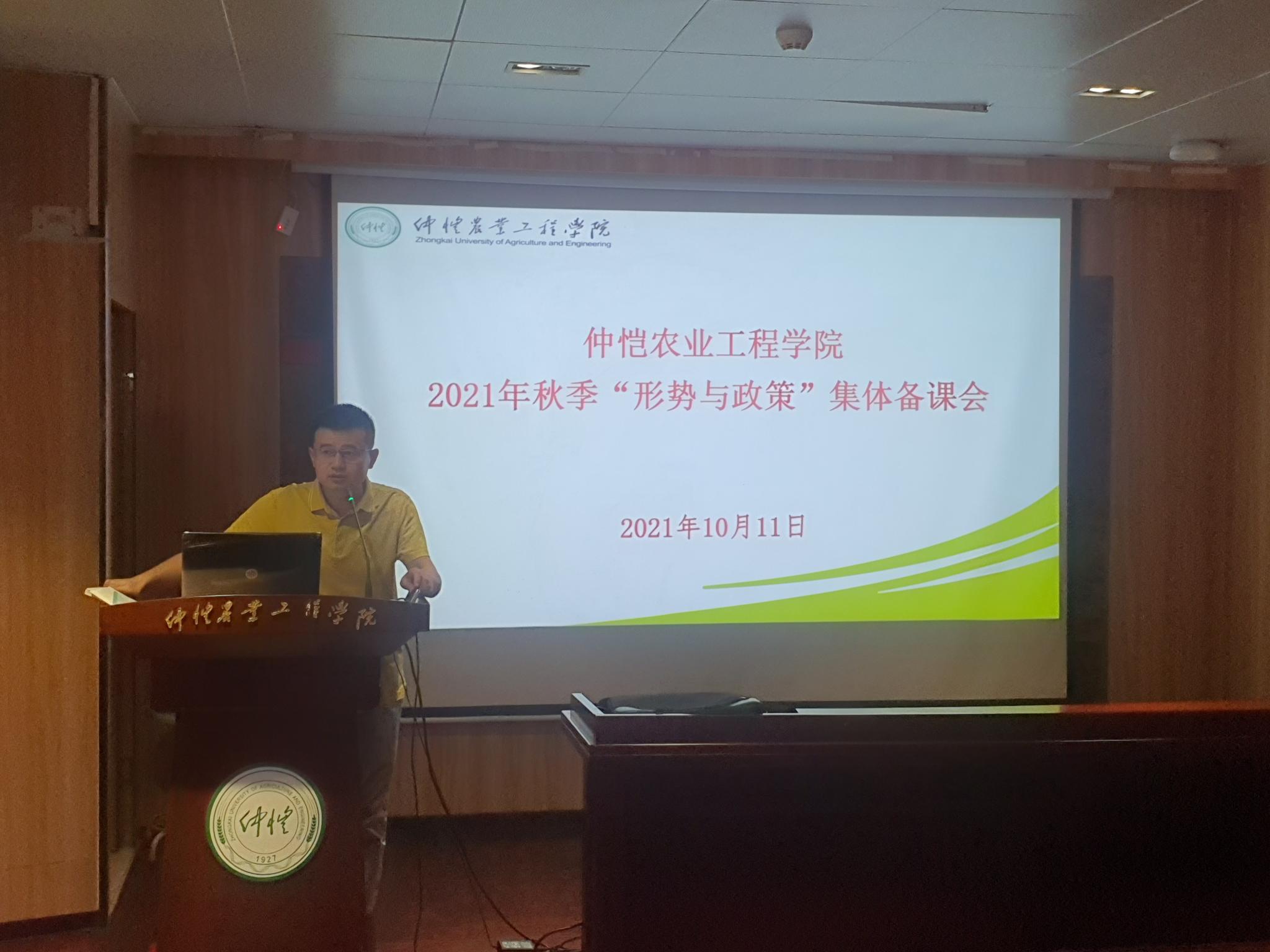 为贯彻落实教育部《关于加强新时代高校“形势与政策”课建设的若干意见》精神,根据《广东省教育厅办公室关于举办2021年秋季 “形势与政策”课备课会的通知》《关于做好各学院党总支书记、院长上第一堂思想政治理论课工作的通知》(仲党办字[2021]8号)以及学校的相关制度,为提升我校“形势与政策”课教学质量和水平,beat365在线唯一官网于2021年10月11日在英东楼111学术报告厅举办了2021年秋季学期全校“形势与政策”课集体备课会。本次会议由beat365在线唯一官网秦抗抗副院长主持,形势与政策教研室主任康耀坤副教授等四位老师做示范教学。