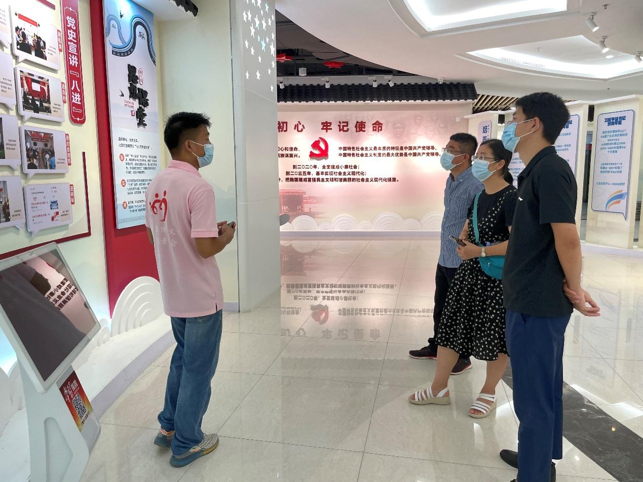 12日下午,团队成员走进全国文明村镇——观背村。观背村距今有1200多年悠久历史,不到1平方公里的地域上承载着乡村振兴的创新模式。在村党支部宣传委员王春娣大姐的带领下,师生们走访调研观背村的60多个“文化部落”和漂亮的观背书吧,体会它如何从脏乱差的破败村庄一步步变成今日的全国文明村镇。建党百年之际,观背村党支部还荣获中共中央组织部授予的“全国先进基层党组织”荣誉。