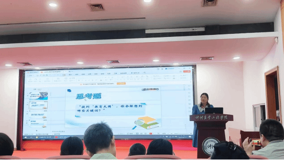 随后,学校形势与政策教研室专任教师吕贤杰、郭小娜、梁星韵三位老师分别就《以人口高质量发展支撑中国式现代化》《从教育大国迈向教育强国》《探寻新时期中美正确相处之道》专题作教学展示。从学生关注的问题切入,结合特色案例及当下时政热点,设计课堂教学互动环节,讲解专题教学内容,分享校本教学案例,给全体教师提供了教学素材和教学思路。