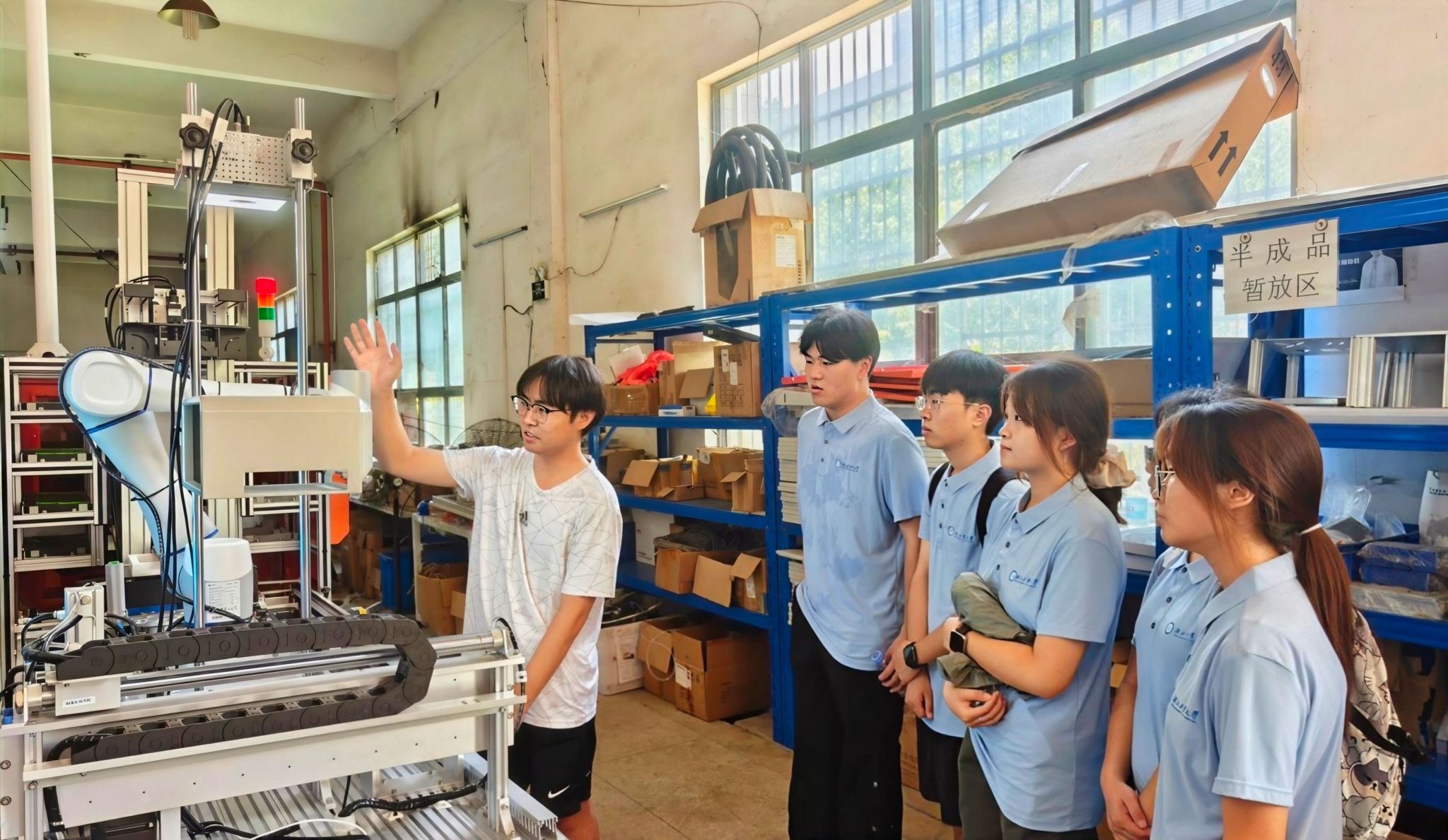 在普及科技知识的同时,实践队聚焦科技发展现实挑战,深入企业开展调研。在苗疆机器人有限公司,师生们实地观摩公司机器人在工业自动化、智能检测等领域的成果,认识到我国机器人领域存在机械臂精度不足、控制算法待突破、高端零部件受国外制约等问题。队员们深刻认识到,打破国外科技垄断,实现科技自立自强,是当代青年义不容辞的责任。此次调研突破书本知识局限,让队员们直观感受行业发展脉动,进一步明晰了学习与科研方向。